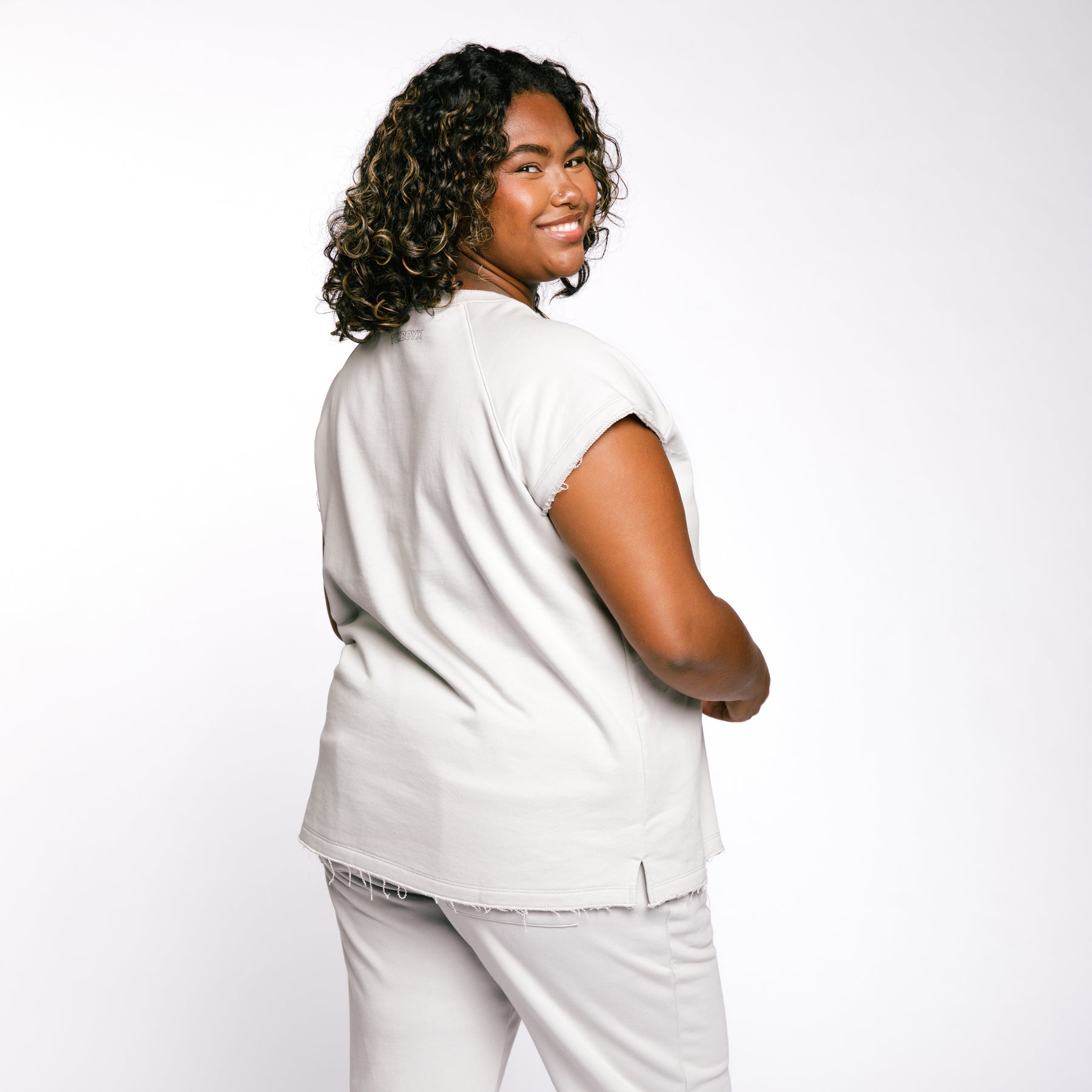 Your layering MVP—with an edge. Made from luxe Australian French Terry—soft, breathable, and perfectly broken-in from day one—this cut off crew is all about effortless style. The classic crew neckline and raw-cut seams give it that lived-in, just-right feel, while the cut-off raglan sleeves bring a sporty, modern twist. It’s the kind of piece that plays well with everything: throw it over a tank and shorts for a coffee run, pair it with our Flare Pants for a coordinated set, or wear it with denim and sneakers for weekend hangs. Lightweight enough for warm days but cozy enough for cool evenings, it’s the ultimate year-round layering piece you’ll keep reaching for. Tip: layer over our classic tees for an easy fall outfit.
